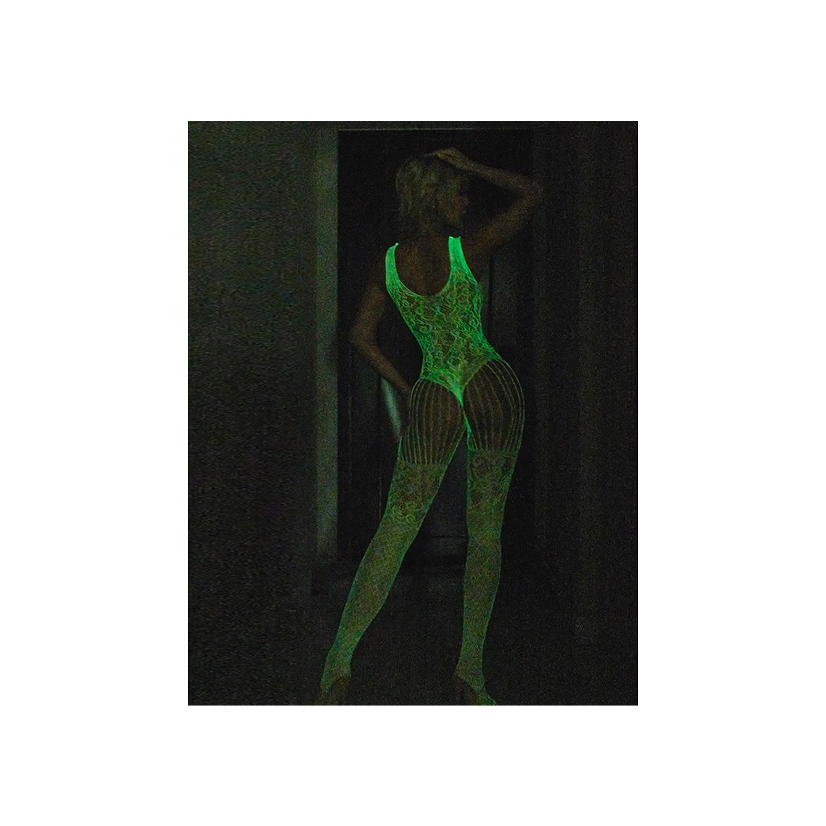 Unesite dašak magije i misterioznosti u vašu kolekciju donjeg rublja uz ovaj beli jacquard bodystocking koji svetli u mraku. Kombinuje senzualnost, udobnost i efektnost u jednom elegantnom komadu.