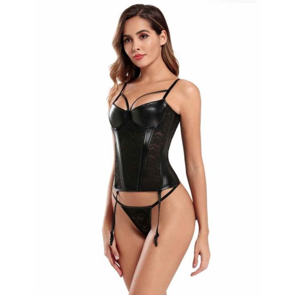 Otkrij savršen spoj hrabrosti i ženstvenosti uz ovaj korset dizajniran za one koji žele da se istaknu. Korpus je ukrašen crnim čipkanim detaljima i preciznim šivenjem od imitacije kože, što mu daje luksuzan i zavodljiv izgled. Sa 10 plastičnih ojačanja (bones) pruža oblikovanje i podršku, dok mekani grudni deo sa "underwire" pojašnjava konture bez žrtvovanja udobnosti. U paketu dolazi i donji veš, tako da si spremna od prvog trenutka.