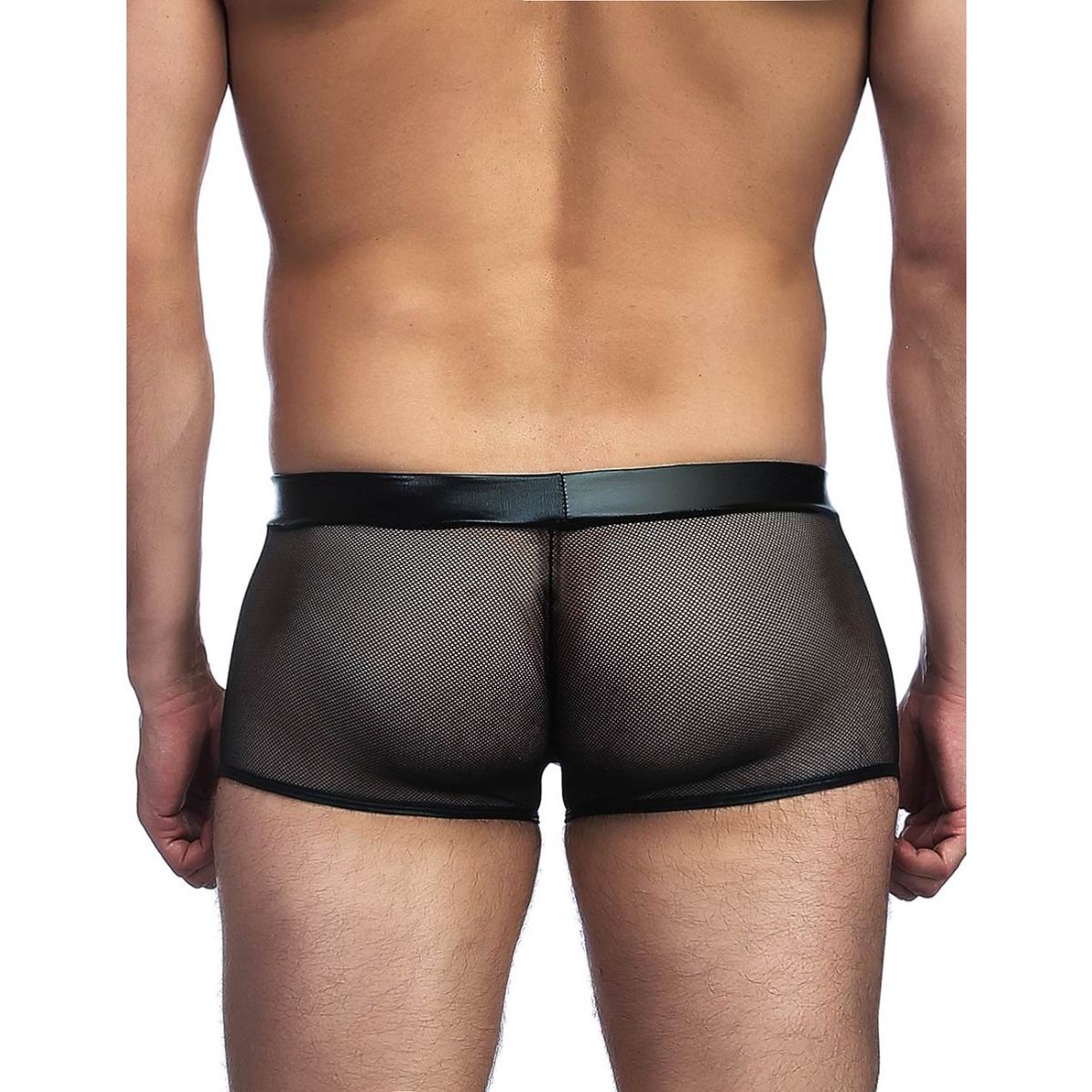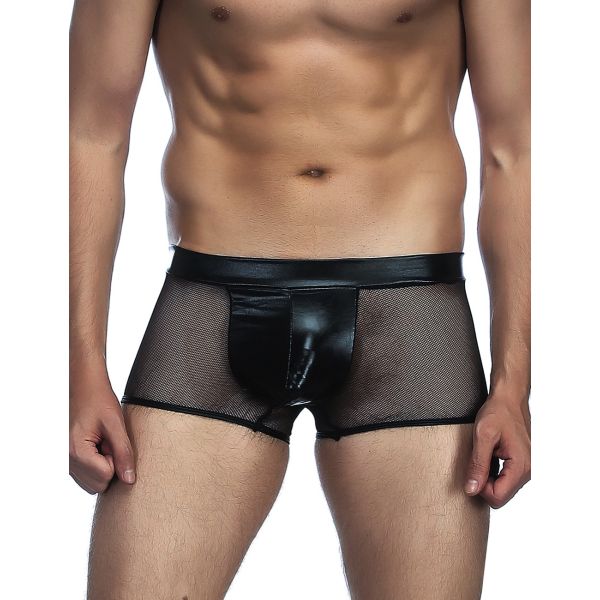 Predstavljamo muški donji veš koji kombinuje udobnost, stil i dozu odvažnosti – muške bokserice od mrežaste tkanine sa eko-kožnim detaljima.