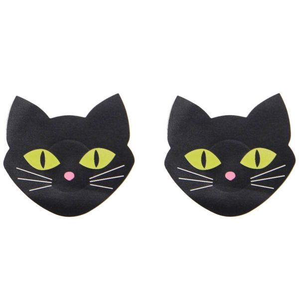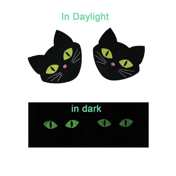 Crne saten nalepnice za bradavice u obliku mačje glave koje svetle u mraku, ultra-tanke i bešavne, bez lepka u osetljivim zonama, jednokratne, univerzalna veličina.