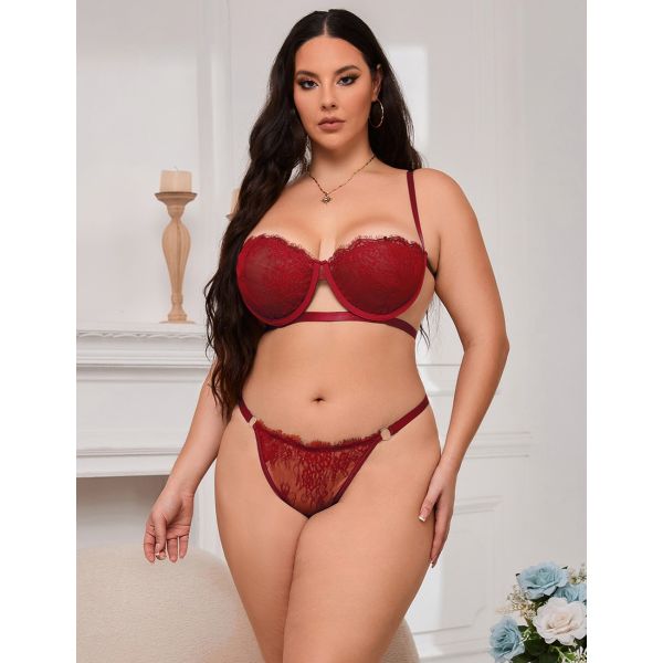 Ovaj senzualni crni komplet izrađen je od fine čipke i prozirnog tila, pružajući besprekoran spoj elegancije i erotike.