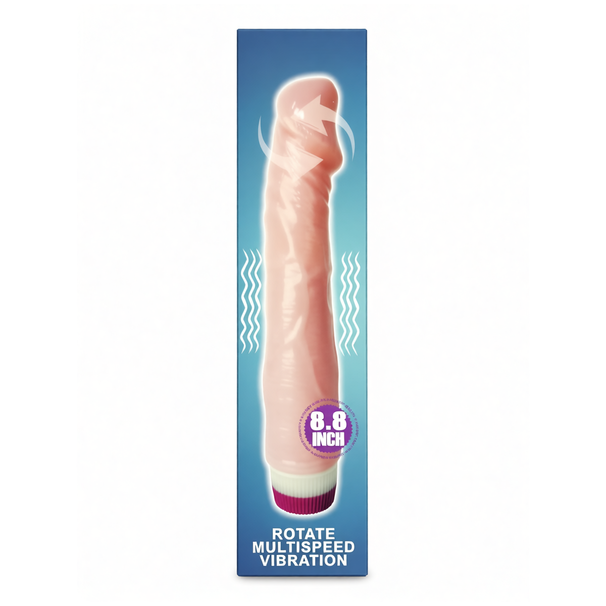 Ovaj moćni vibrator dizajniran je da pruži intenzivno i realistično zadovoljstvo zahvaljujući kombinaciji rotirajuće glave i višestepenih vibracija. Izrađen je od visokokvalitetnog TPE materijala, koji je mekan, elastičan i prijatan na dodir, te verno imitira osećaj prirodne kože.